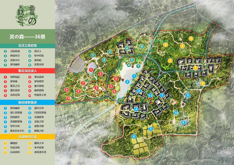 仁园·爱之森按照传说故事的叙述走向,在规划设计中分为四大旅游主题片区,包含八大体验区,共有36个独立景观……