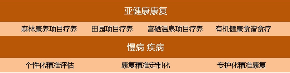 针对业主和会员的体质、亚健康、慢病、疾病等状况,仁园·爱之森健康管理中心统依托森林康养项目系统、田园康养项目系统、温泉疗养、高品质康养度假民宿酒店、专病康复会所和协作的优质医疗院所,构筑综合性精准康复诊疗体系。经由个性化精准评估与定制化精准治疗,实现专科专护的精准康复,帮助业主和会员回归生命之初的饱满。